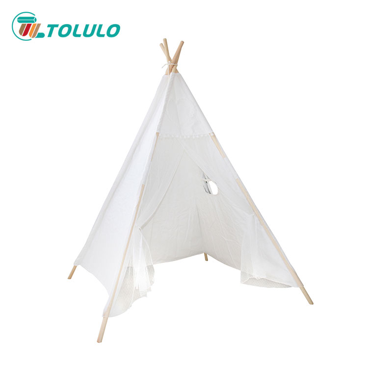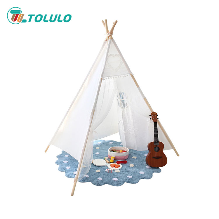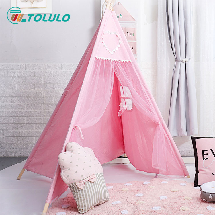 हा गोंडस आणि स्टायलिश टीपी तंबू कोणत्याही सजावटीसाठी आणि सभोवतालच्या परिसरासाठी योग्य आहे, तुमच्या लहान मुलाला केवळ खेळण्याची किंवा विश्रांतीची परवानगी देत नाही तर मुलांच्या खोल्या किंवा बालवाडीसाठी एक सुंदर अलंकार देखील आहे. पांढरा किंवा गुलाबी लेस अधिक शुद्ध कॉटन कॅनव्हास फॅब्रिक आणि खास डिझाइन केलेली रचना यामुळे मुलांसाठी खेळण्याचा तंबू मुलींसाठी एक स्वप्नातील घर बनतो. मुलांसाठी ही एक परिपूर्ण वाढदिवस, ख्रिसमस किंवा हॅलोविन भेट आहे.